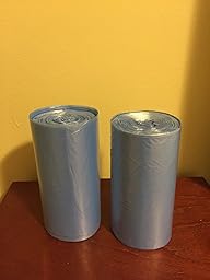 These 7 gallon garbage bags are perfect for the trash cans that are smaller sized,for places like the bathroom, office, and a bedroom trash can. They are blue transparent color bag and come in two large rolls totaling 120 bags. They fit nicely into my trash cans, once they are full they are easy to grab and tie up and toss in my bigger trash can.