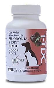 • 1-TDC "NEW TWIST OFF" Dual Action Natural Support for Periodontal & Joint Health in Dogs & Cats | Professionally Formulated Total Wellness Formula with 1-TetraDecanol Complex (120 softgels)