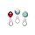 Nice set of rattles. Each has a different mechanism. The red one contains a jingle bell; the blue one contains little metal cymbals; and the blue/yellow one has a clapper mechanism. My three month old enjoys the red and blue ones (he hasn't figured out the clapper yet). Also, the hole in the handle allows you to hand it from a play-yard with those little plastic chain things so a baby who can't quite hold these can still swat at them. No complaints.