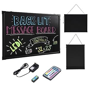 • PACKAGE INCLUDED: 1 × LED Writing Board 1 × Remote control 1 × Power adapter 1 × USB controller 2 × Microfiber cloths 1 × Hanging chain 2 × Fluorescent markers (colors vary) 1 × Instruction