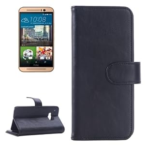 Horizontal Flip Magnetic Buckle Leather Case with Holder & Card Slots & Wallet for HTC One M9 (Black)