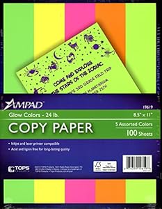 Esselte Ampad 19619 Copy Paper Glow Colors 24 lb. 8 1/2" x 11" 5 Assorted Colors 100 Sheets