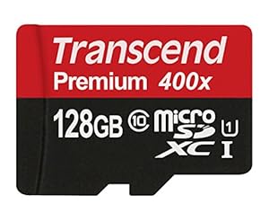 Transcend 128GB MicroSDXC Class10 UHS-1 Memory Card with Adapter 45 MB/s (TS128GUSDU1)