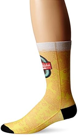 12 inch tall sock with beer bubbles sublimated print and logo art at front view of sock.