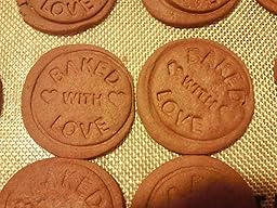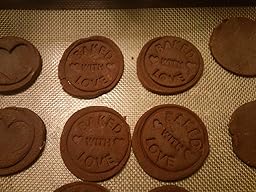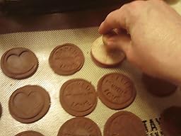 These cookie stamps are a lot of fun. I really enjoyed stamping molds into chocolate shortbread cookies I made for my daughter's class. They are very easy to use. After experimenting with several different ways of organizing the steps, the one that seemed to work best for me was rolling out the dough, cutting the cookies with the round cookie cutter, moving the cookies onto my silicone baking sheets set in metal trays, stamping the cookies with the mold on the wooden handle, and then baking them. When I stamped them before moving them to the cookie sheet, they didn't always come up off the cutting board easily. The silicone molds clean up easily in warm soapy water. The silicone is culinary grade so I'm not concerned about using it. I've become a big user silicone baking tools. They are so easy to use and clean up so easily. I look forward to using these stamps on many more cookies to come.