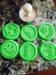The Social Media Tween cookie stamp mold kit comes with 1 Dutch wooden handle, 1 stainless steel round cookie cutter and 6 themed stamps (green). Silicone cookie stamp sets are one of the most popular new baking trends and make great, inexpensive house warming gifts. All Silicandy products are made of the highest quality food grade FDA approved silicone. These stamps work great for sugar cookies, shortbread cookies and any other cookie dough that leaves an impression. Kids love the shapes and sayings so it's a great hands-on activity for the whole family. The silicone stamps and cookie cutter are dishwasher safe and temperature resistant. The stamps stack and attach to the handle and each other for easy storage. The impressions stay beautifully after baking and are ready for frosting, sprinkles, fondant and any other decorating technique you choose to use.