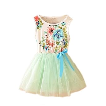 Uninukoo Baby Girls' Floral Bowknot Tank Layered Mesh Tutu Dress 2-7Y