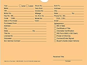 Vehicle Deal Jackets for New or Used Car Sales Buff, 100 Quantity