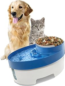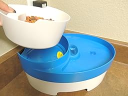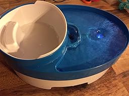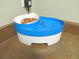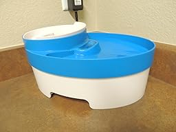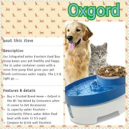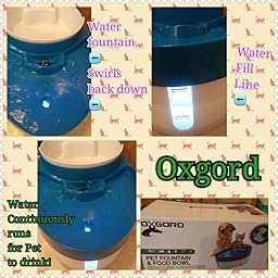 I love my Oxgord Pet water fountain bowl. I love that I don't have to fill the bowl multiple times a day every day! The food bowl makes for a great scoop for my pets food, since they are messy eaters I just leave it empty and use it when I need to fill the food bowls. I love that it is a large bowl for the water to fountain into and the design is perfect for it to flow back down. The water continuously cycles through and goes through a filter so my pets always have clean fresh water. My pets now drink even more water then they did when they had a regular bowl; in my opinion that is because with this they are continuously getting fresh clean water! There is a great clear slot on the front of the water holding bowl with indicators of how much water you want in the bowl. (You want to keep atleast 1.2L and at most 3L of water in the bowl at all times!) The motor secures tightly into the top lid and is made for water so you don't have to worry about anything happening to your pets safety wise! I have had mine continuously running for close to a month now and have had no issues! I will need to replace my filter soon, so I recommend buying atleast 1 extra filter when you purchase this to save you rushing to Amazon to buy one after your filter is past due for changing. Both of my pets absolutely love this bowl. My cat also uses it as a toy; she will try to stop / catch the water before it goes down the spout to cycle through. She hasn't managed to stop the water from going down but she tries every day for hours. My baby also loves to splash in it the water bowl and tries to catch the water; I don't mind since he doesn't have full access to all of the water he can't make a huge mess with the water! (Parenting WIN with pets.Read more ›
