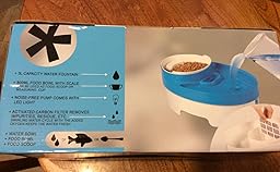This pet fountain water and food bowl is amazing! The bowl arrived very quickly and was very easy to setup. It comes with 3 main pieces the white under carriage that holds the water and the water pump, also included was a filter that slides into the filter area. The blue top pieces and the food dish which is also a food scoop marked with units in cups. There is a clear see through window on the side of the unit that lights up so you can see the water level. The directions suggest to fill between the min and max lines. My cats love the, the flowing water kept my baby kitten entertained for hours. The pump is very quite so it does not bother the cats at all. The whole unit is made very well with quality materials. This is the best purchase I have made for my animals, I highly recommend this for both dogs and cats!