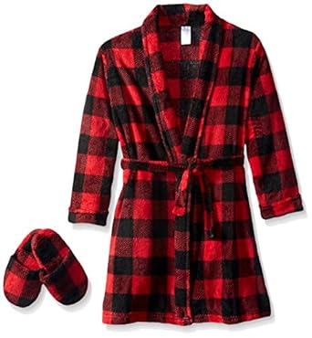 Too Cool 2 Sleep Big Boys' Buffalo-Check Robe with Slippers