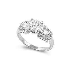 925 Sterling Silver Cubic Zirconia Round Center Ring 7MM