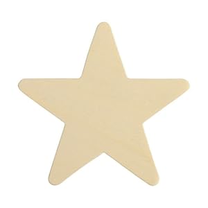• Large unfinished wood star cutout shape measures: 4" tall x 4" wide x approx 1/8" thick
