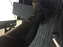 These are very well made boots, however I wouldn't have bought them at full price. I purchased them because of the wide calf and that part of the boot is perfect. I usually buy size 7 in boots in order to accommodate a thick sock, however these even with a thick sock a bit too lose around my foot. So after wearing them all day, walking, sitting, standing in the train, I haven't had the massive urge to take them off; I couldn't have probably worn them even longer and they didn't slow me down as big boots usually do when walking. I haven't had any problem with the boot hitting my leg whether in the front where they are right at the knee or in the back where they are just below (I'm 5' tall, but my legs are longer then my torso). I have two detractions - they are very square through the ankle in the front, turning my ankles into cankles (more so at the front then at the back) and they scuff very easily around the shaft of the boot. After wearing them just one day I already have a discoloration on the top of my right boot, right around the knee area - I can't fathom how it's gotten there and what could have made it. I am keeping them though, they are very light and comfortable and they do not chafe anywhere, which is rare.
