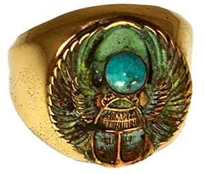Patina Brass Egyptian Motif Scarab Ring - Turquoise