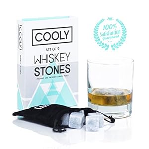 • Cooly Whiskey Stones - Gift Set of 9 Scotch Rocks - Premium Barware Gift Made of 100% Soapstone
