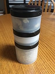 A nice accompaniment to the new and improved blender bottles. The stacking feature is awesome. I bought a couple new sets for my husband who kept using our son's toddler containers and ziploc baggies to tote his powders and pills. Now my kitchen is free of old baggies and my kid has his dishes back!