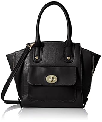 Stay on top of the trend with classic style structured bucket tote that can be worn to work or on the weekend. The dual tone leatherette boat shaped satchel purse boasts a front pocket with a turn key lock and decorative zippers on each side.