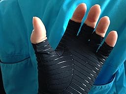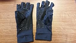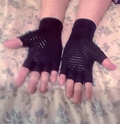 I like that they are fingerless, as I figure they would then be too warm on me. The fabric is apparently infused with copper, which is supposed to enhance circulation and reduce inflammation. They were comfortable, not pinching or making my fingers hurt anywhere at all. I then spent several hours on the computer, as per usual, typing and typing away. By late tonight my hands would usually be quite painful, especially the arthritis in my left hand, with some general aching in both wrists. However, they are a bit less painful, and I look forward to using them more in the future to see if the small improvement I feel continues, ends or increases. I plan to do an update after more wear.to show how they are doing for me, and to see if they help with driving. I was given this pair of gloves for a discount in exchange for an honest review of them.