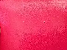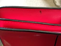 I purchased this after reading multiple good reviews. Received it today and initially thought it was perfect. Then I noticed several black stains on the pink leather as well as small pieces of something embedded in and sticking out of the wallet. I wouldn't buy it in a store after seeing the flaws.