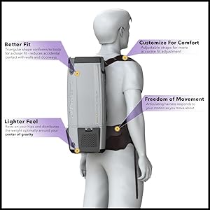 • Formidable tool for battling poor indoor air quality (IAQ) with the added comfort and mobility you get from a backpack HEPA vacuum