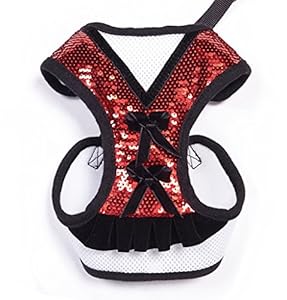• Red sequins with two black bowtie on exterior,giving princess look to this dog dress harness.