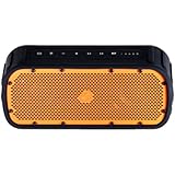 This is a small but very powerful Bluetooth speaker with a ton of capabilities fitting into a fairly small package. I like the low-profile and rugged design and am confident to take it anywhere I go, indoor and outdoor. The clip-n-go type of strap is easy to use and lock the speaker in place tightly, although I am not sure how long this silicon clip will last as you do have to apply a little pressure to lock and unlock. If you don’t turn it all the way up, it produces reasonably good highs and lows seeing the driver size (maybe 2”?). One thing I like the most is the battery indicator showing up on the cell phone once they are paired, so that you’ll know when it’s time to recharge. Similar to its competitors in this same speaker sector, it carries a lot of the same good features and functionalities like ease of pairing, speakerphone, long-lasting battery life etc. To top it off, Amazonbasics is always backed by Amazon. If anything falls short, their customer service can always work something out.