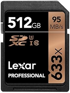 • Lexar 512GB Professional 633x Class 10 UHS-I U3 SDXC Memory Card - Lexar Lifetime Limited Warranty