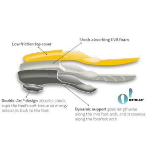 • Double-arc heel design cups the foot and reduces pressure on the plantar fascia