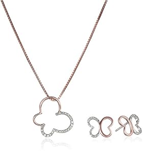 This item: Two-Tone Sterling Silver and 18k Rose Gold Over Silver Diamond Accent Butterfly Pendant Necklace and Earrings Jewelry Set