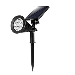 This light is very bright. I was surprised that this stays on through out the day. When I first got it, I put it to work for our Halloween decorations and it was great. No need to plug anything or wires that run where they shouldn't. Both the light head as well as the solar panel are independent of each other. This gives you the ability to focus the lamp while adjusting the solar panel to the optimum angle for maximum sun exposure.