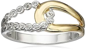 This item: Two-Tone Sterling Silver and 18k Yellow Gold Over Silver Diamond Accent Reflective Setting Ring, Size 7