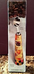 • ELEGANT DESIGN: Beautiful fun coffee print on the handle gives a touch that makes it a perfect gift for the coffee and tea lovers. Measures approximately 7" long and has a metal scoop and a colorful and whimsical ceramic handle.