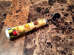 This Coffee Scoop With Ceramic Handle by Best Ceramic Coffee Tea Scoop is adorable. The print on the handle has cute little mugs and the scoop itself is tapered. It is 7” long and has a nice, sturdy weight to it. Some have stated that they did not like the fact that it did not hold a lot but it works great for my refillable k cup It is perfect and I don't spill like my past method of a kitchen spoon. The spoon does need to be hand washed but that does not provide a drawback for me.