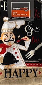 French Chef HAPPY Kitchen Towel Set ~ 2 Towels ~ 100% Cotton ~ 15" x 25"