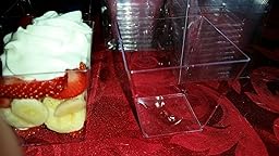 These Modern Style Clear Square Cups will give you a fun and unique ways to serve sides, desserts, soups, puddings, ice cream and so much more. This package includes 50 crystal clear square cups. Each square cup measures 2.75" x 1.75" x 2.75" inches and can hold up to 5 ounces. These would look amazing on a dessert table, you can decorate each cup with decorative foods. You can also create colorful layers of puddings and jello with a whipped cream topping. I plan on using these as candy cups for my son's Birthday party. I want to use skittles and jelly beans and create a colorful design. These can be used as party favors as well. These are very versatile and can be used for an array of things. I love how comfortably these square cups fit in your hand, if you are serving these at a party your guests can walk around with these. If you really want a wild party, you can use this as a large shot glass and get creative, you can even make alcoholic jello shots in this 5 ounce size. These may be plastic but they are sturdy enough to wash and reuse. I am really pleased with this set of Modern Style Clear Square Cups and I highly recommend them for your next event.