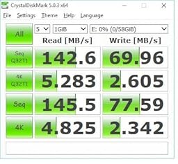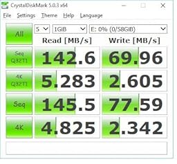 Overall this is a great flash drive, it gets around 140MBs read and 40MBs write (Slightly slower than the 64GB version). It's not quite as fast as the SanDisk extreme version but it's the fastest metal drive I've found, you can see a benchmark in the attached image.