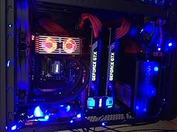 Excellent case with fantastic airflow. It's quiet but not silent as it has no noise dampening materials. It comes with three 200 mm Blue LED fans installed (2 front, one top) and one 140 mm no-LED fan on the back installed. I installed the following additional fans without much problems: additional 200 mm blue LED fan on top (for a total of 4), replaced the back fan with blue LED version, added 120 mm blue LED fan on the bottom. Installed 280 mm radiator on the top (part of AIO CPU cooler). Everything fits. Pictures are attached.
