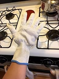 The cutting prevention gloves are a gem for me. I use a knife every night making dinner and on weekends for breakfast. I am clutsy, aftraid of knives so I hesitate every time. I have been using the gloves, cautiously, because I was still afraid. Not anymore! I accidently slipped cutting a really thick vegetable, the gloves saved me from a would of been deep cut. Teaching the kids to cook, I have had them use the gloves as well. They are not bulky, fit well, non slip. (You need a secure fit to cut correctly). They are comfortable, not scratchy feeling. I have small hands but they also fit my husbands hands. He used them for a bbq meat. Washed well, did not lose their shape or unraveled, used the gentle cycle. Stain from the bbq came right out. Recommend the gloves for sure.