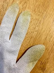 The only thing I don't really like about the glove is that it can be a little itchy if you have sensitive skin as I do. When my knuckles touch the inside of the glove, it feels like there are little wires from inside the glove poking my skin, which can be uncomfortable. Please be advised that these gloves do stain; the fingers of mine are now yellow from using them with ginger, even after being hand washed afterwards. However, I do think this glove will prove to be very durable, as it feels like it is made well.