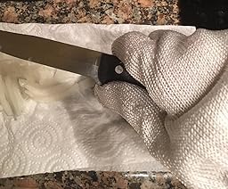 Now there are no more worries unless they stab the point of the knife through the glove, which is still quite hard. I am happy to use it when doing a filet cut or the last cut of whatever is hard to make.
