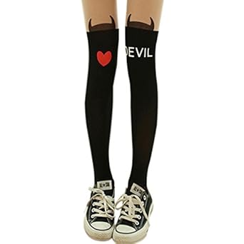 Usually, relatively cheap stocking means relatively cheap material (my other stocking reviews will support this.... *grumble grumble*) but these are CUTE and have lasted GREAT! They're not thick but my finger doesn't shoot through and rip them to shreds every time I try to get dressed either! I wear the devil horns on the back of my knee but I don't think it really matters either way - they're adorable!!!