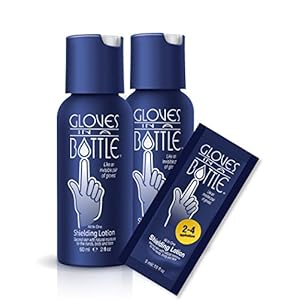 • Gloves In A Bottle Shielding Lotion 2oz Bundle -A protective barrier against toxic chemicals,grease,oil ,dirt,paint,wood stains & grime-for woodworkers, painters, construction workers, & gardeners.