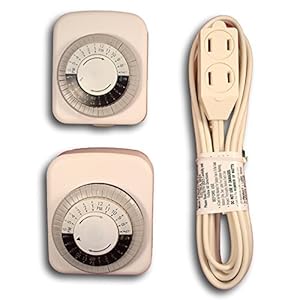 • Plug-In Mechanical Electric Outlet Timers with LED Backlights (2), Plus 6-Foot Extension Cord (3-Item Bundle)