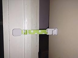 I was thinking this would be the absolute perfect solution to keeping my children and pets out of certain rooms I'd rather them not be in at certain times and I was right. I purchased this "Door Buddy" door strap in the green with polka dots color but I love there are other patterns to choose from, I personally like them all. Everything but the door is included to set up your new door buddy product. On the back of the strap and on the back of the lock there are very strong adhesive squares that will attach to any door frame or wall. The strap is adjustable which is great because all doors and areas that you need to use your door buddy might not be the same.