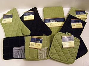 • 10 Piece Bundle Kitchen Linens: 2 Kitchen Towels, 2 Pot Holders, 2 Oven Mitts, 3 Dishcloths, & 1 Dish Drying Mat.