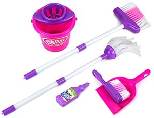 Our daughter absolutely loves to play house. Her favorite activities are cooking, cleaning and helping with laundry. While I would like for her to have some less domestic hobbies, I think this is fairly normal for three year olds who have little exposure to new hobbies. This is a very cute set that has gotten her all excited. It includes a broom, a mop, a dust pan, a brush, and a pretend soap bottle. The set is cute and comfortable for her to hold. Overall, I think that this is a cute and fun set. I highly recommend it.