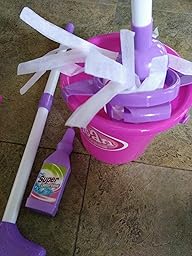 The bucket is cute as well as the hand pan. There is some kind of sponge holder or something that fits into the bucket. That works ok and the bucket itself is rather cute. My daughters loved to put things into the bucket and take them out again. Some of the pieces are perfectly fine while others are low quality. The detergent was missing from the box. The broom head itself is decent as is the little brush. But the handles of both the mop and the broom are very thin and my daughter broke it right away. The mop looks like dryer sheets sliced up for the mop head. The colors used are cute and bright. My daughters really liked the toys and wanted to use them. If you want to keep the handles that fit together permanently together and not taken apart by your kids use glue or double sided sticky tape on the connector parts. I received a sample in exchange for an honest review.