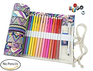 • CreooGo Canvas Pencil Wrap, Travel Drawing Coloring Pencil Roll Organizer For Artist, Pencils Pouch Case Hold For 72 Colored Pencils (Pencils are NOT INCLUDED)-Bohemian,72 Holes