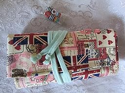 I received this pencil holder in the UK print and it holds 72 pencils. The UK print is very colorful and pretty. It came with 3 pairs of beads in different patterns so you could pick which you like best and add to the strings for decoration.